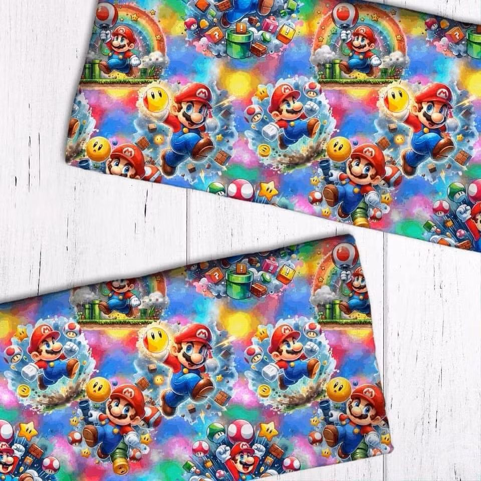 SUPER MARIO FT 1METER SEK 230,00 Säljes om 1 meters bitar. Produkten är tyvärr slut i lager. :( Dela Information OBS detta är ett licenstyg, får endast användasFör eget bruk. 1 meters bit.Öglad college 94% Bomull 6% LycraBredd: ca 160 cmVikt: 230/m2
